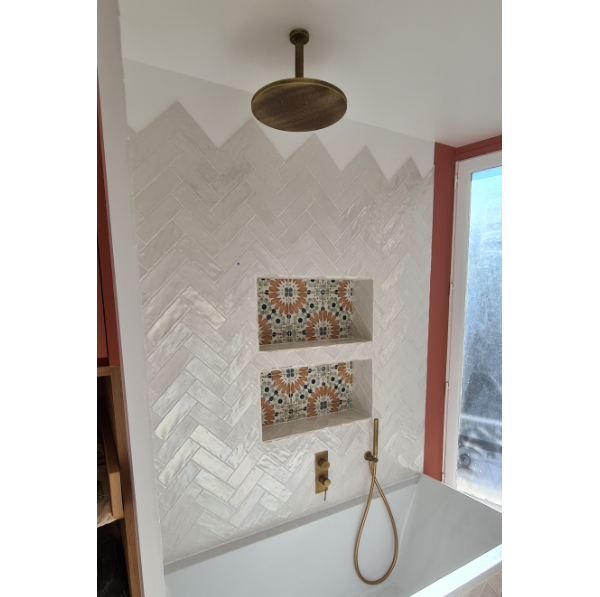 Franslère, le plombier, installe de la robinetterie encastrée qui donne une image luxe à notre salle de bain. Elle n’était plus fonctionnelle et j’y perdais beaucoup de temps. Grâce au savoir-faire de LumyBat et à ce nouvel agencement, je gagne un temps précieux et mon mari est ravi !